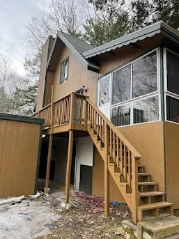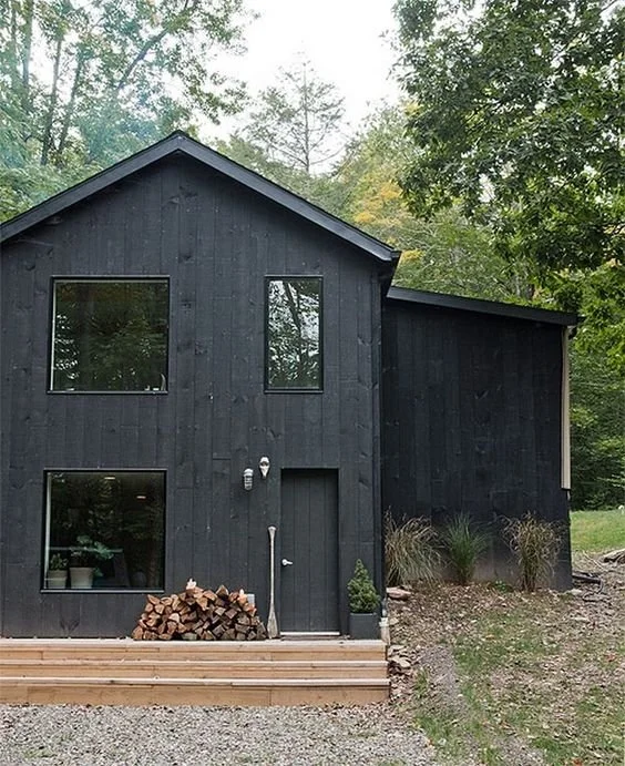 When we purchased this property we knew paining or changing the exterior color was investable. I mean just look at this color combo… I have swooned over black cabin exteriors since as long as I can remember. There is just something so damn sexy and magical about a black cabin in the woods with the forest as a backdrop. But like always you second guess yourself I was throwing around the idea of a white exterior as well. Our contractor had suggested to go with a Sherwin Williams product so I started on their website. They have a handy Web Visualizer where you can input a picture of the space you want painted and it will manipulate the color for you. This was helpful to see if we wanted to go int he black or white direction. It’s not perfect but it gives you a great overall idea of what the space would look like. So after I selected a few colors went to a local dealer and picked up the paint swatches to see in person. I also resorted to Pinterest and other bloggers for more insight on this color, in the end we decided on Sherwin Williams Black Magic. We absolutely love how the color turned out, it is bold and beautiful and 1000x better than the terrible brown and green combo that it covered. I will say that it does catch a blueish tint in certain angles, but overall we are so happy with how this color turned out. There is still a lot to do on the exterior but this dramatic change gives us a solid design base to build off of. This is a great example of how much color can change and define a space. Let me know what you think of this transformation in the comments below!
