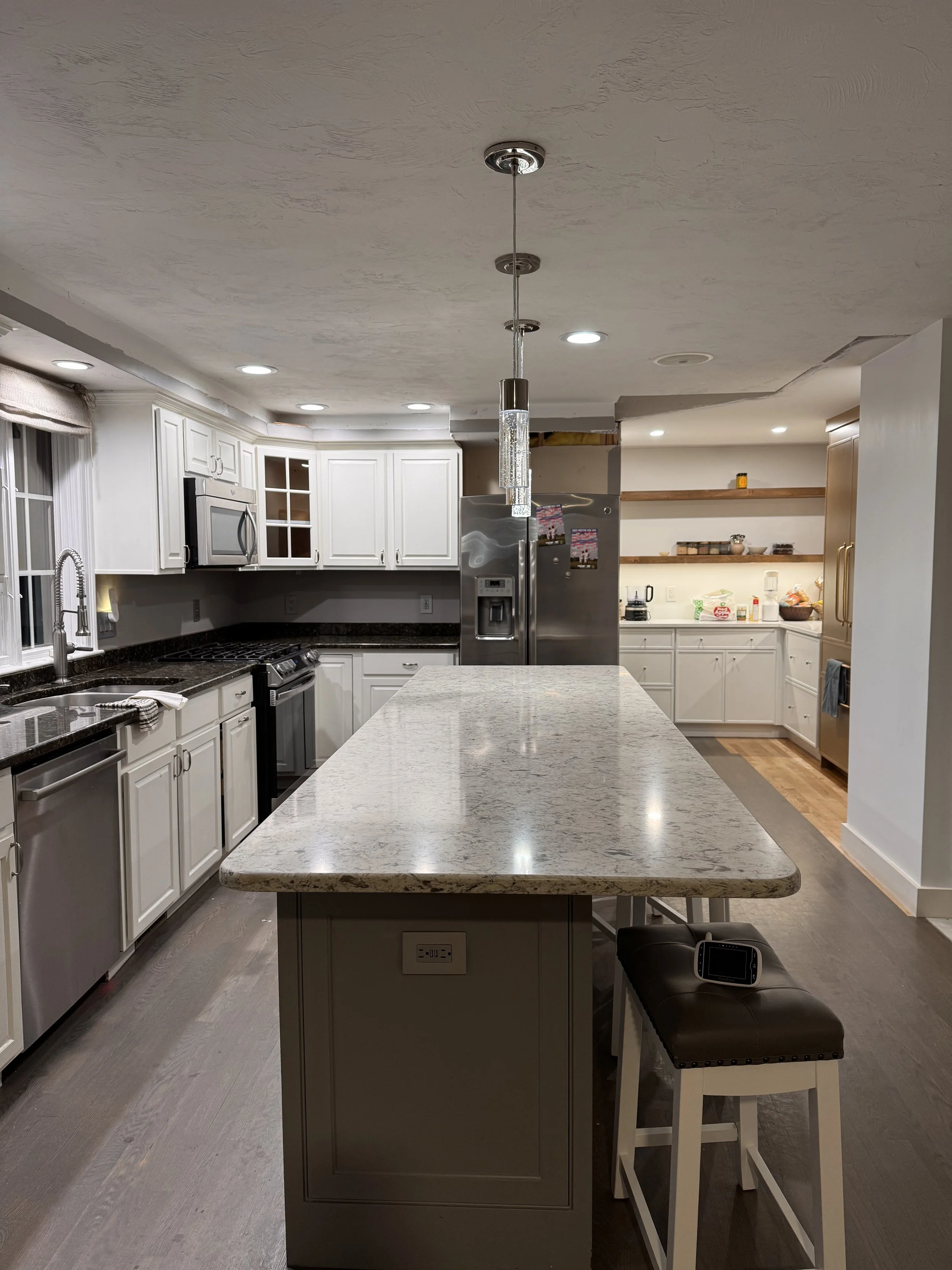 I worked with Nicole at Signature Cabinets & Design in Norwell MA. She was so fabulous to work with, a truly great experience from the very first time I walked into the showroom to completion. She helped layout the design, and walked me through the entire process. Cabinets are such an important factor to how your space functions, so I knew that I needed some extra guidance here. For the extended pantry area we used US cabinet depot as more of a budget friendly option. For the kitchen area we used Fabuwood.